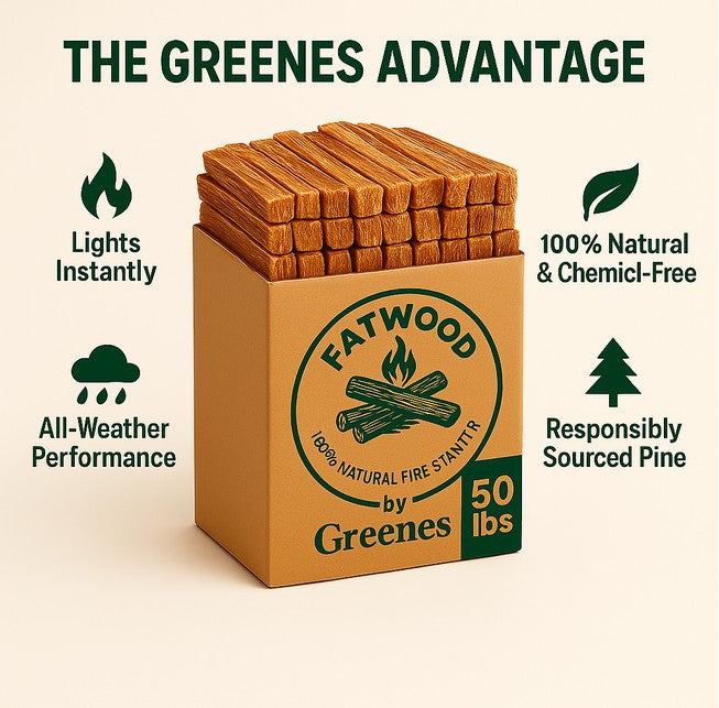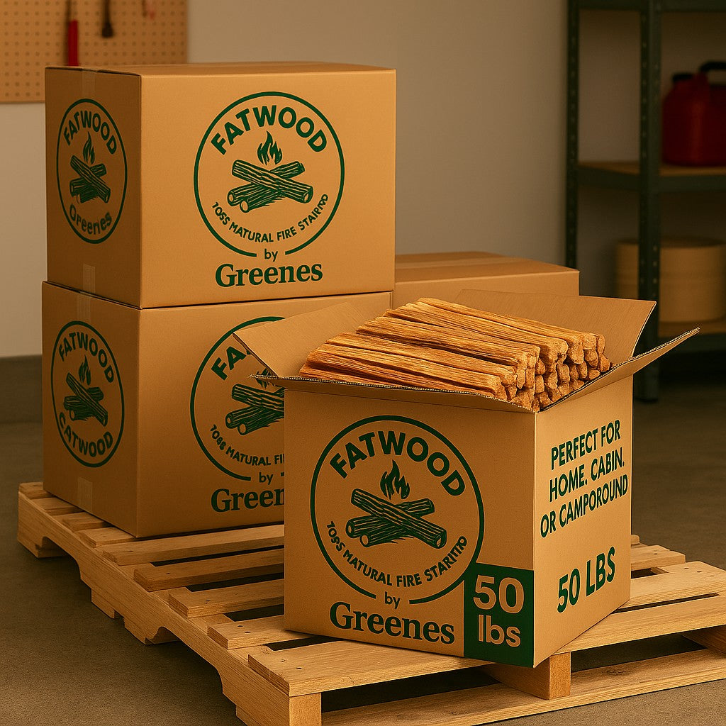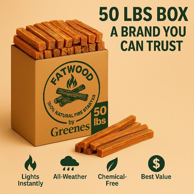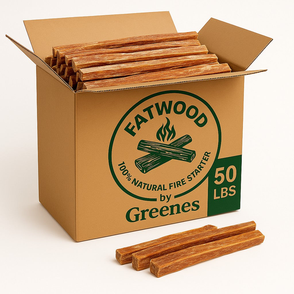 Ignite any fire fast — naturally. Fatwood by Greenes® is nature’s original fire starter, cut from pine stumps saturated with natural resin. It lights instantly, burns hot and long, and works in any weather — no chemicals, no mess, just pure pine power and the lowest cost per pound.