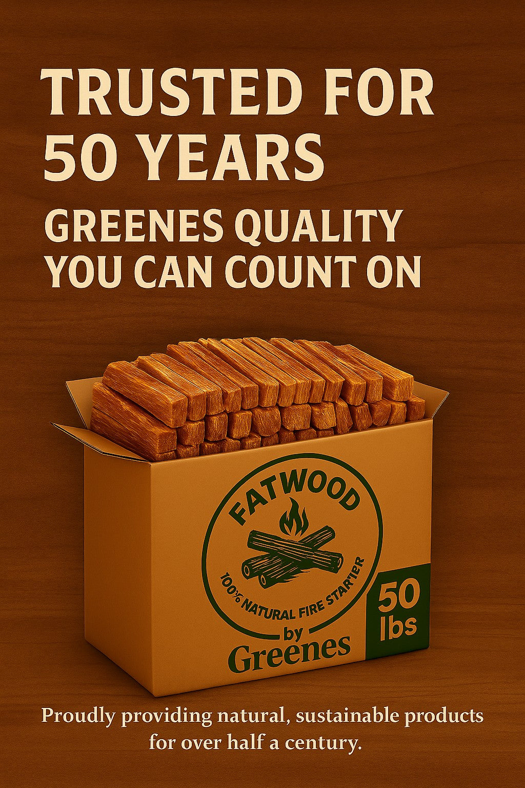 Fatwood by Greenes® — 50 lb Box of 100% Natural Pine Resin Fire Starter