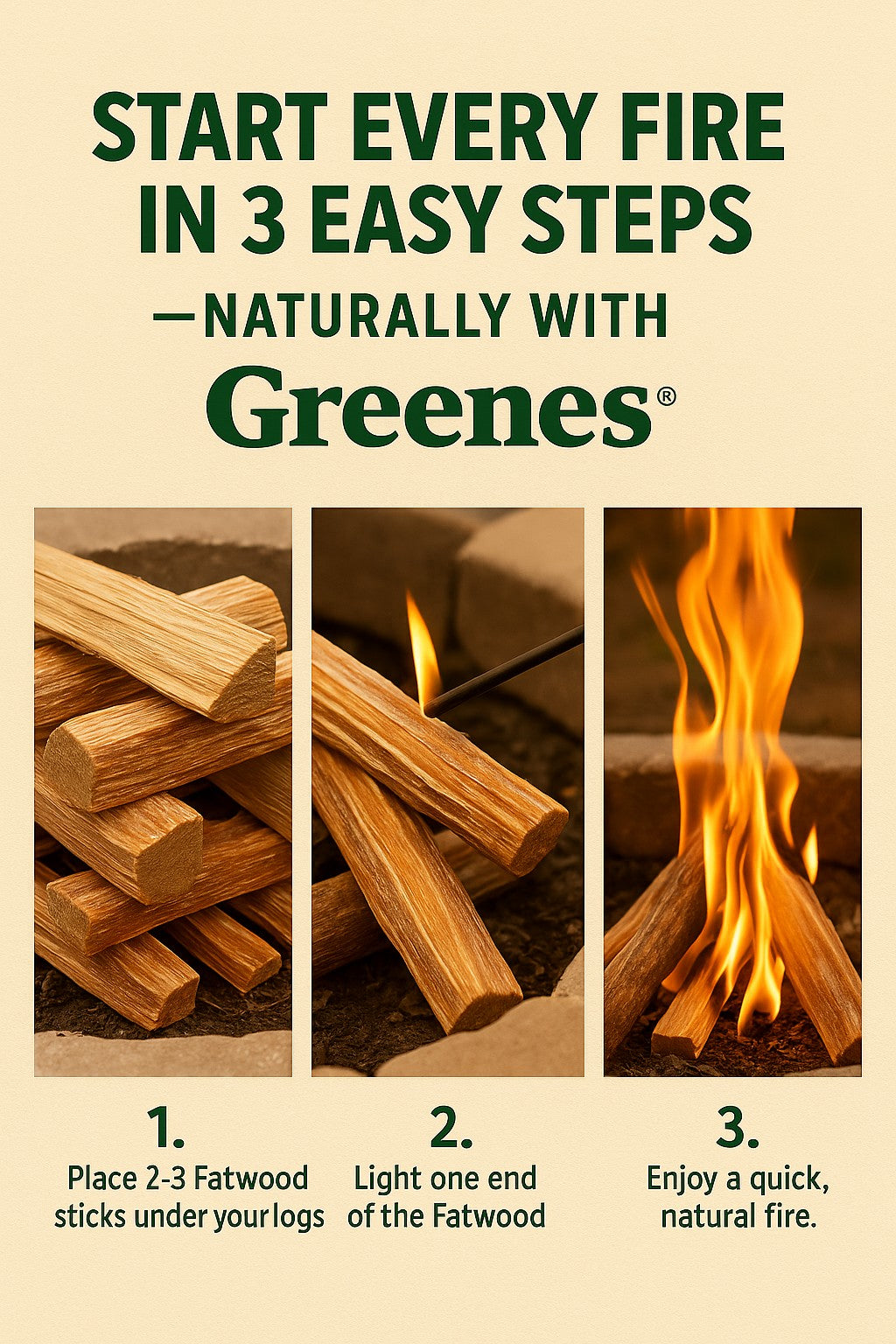 Fatwood by Greenes® Natural pine resin lights fast & burns hot 100% natural pine wood ✅ Instant ignition • ✅ Chemical-free • ✅ Lowest cost/lb